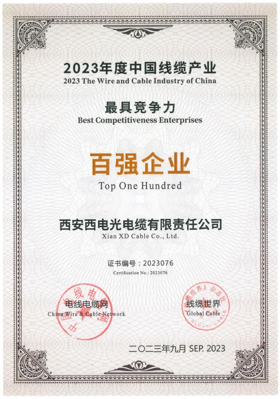 近日,以“强链谋局 聚智发展”为主题的2023年中国电线电缆行业大会发布了“2023年度中国线缆产业最具竞争力企业”名单。中国利来国国际集团所属利来国国际光电缆入选“中国线缆产业最具竞争力企业100强”榜单。
